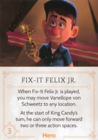 To counter King Candy, the best way is getting his Heroes in play. Sergeant Tamora Jean Calhoun is a constant drain on his Power, and Fix-It Felix Jr. slows him down and prevents him from spamming his good actions. Once the race has begun, his Fate Effects become a lot more potent, letting you push him back and Vanellope's racer forward. Keep Vanellope ahead of him, as he will have to start the race all over again if she crosses Start/Finish before he does.